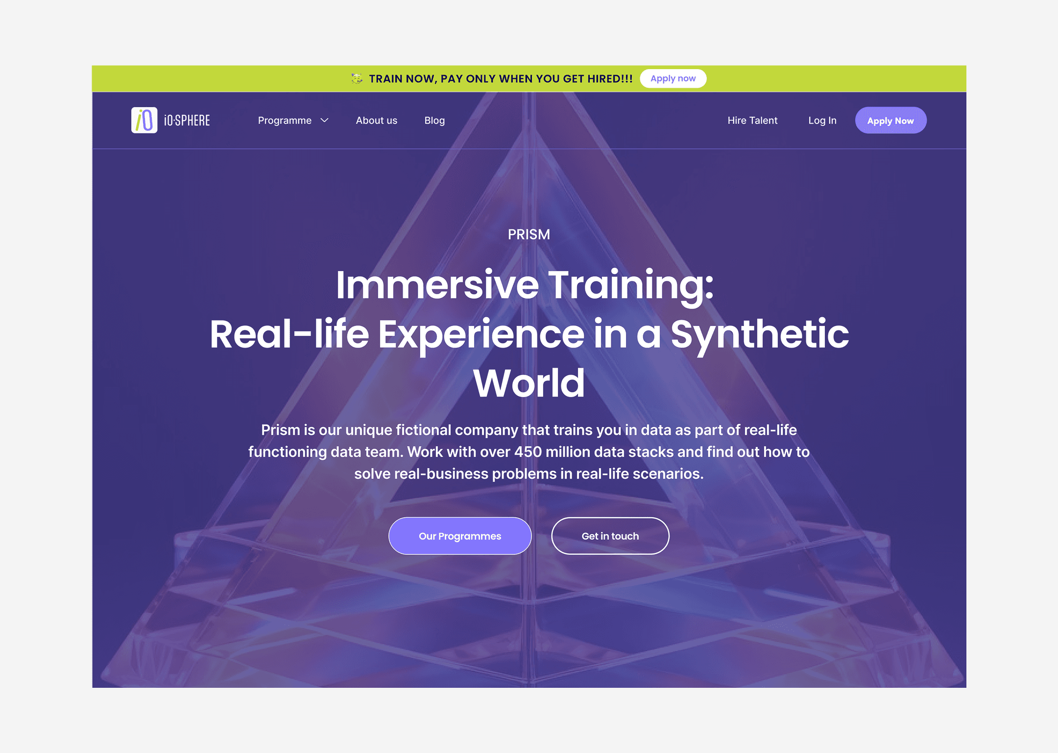 I designed the homepage for iO-Sphere, a UK-based data training platform. The focus was on clear messaging, trust-building, and strong CTAs to drive sign-ups for their pay-after-placement program.